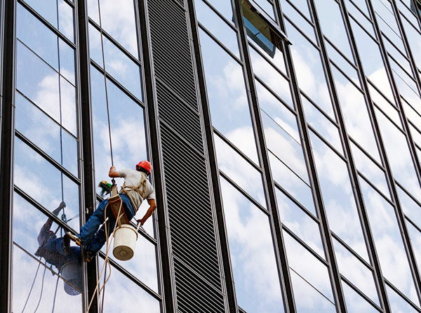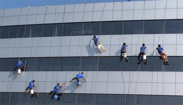 外墻清洗分為吊板方式和擦窗方式。吊板方式是用吊繩、吊板將人吊到工作位置進(jìn)行清洗。這種型式比較簡單,成本也低,只要工人身體素質(zhì)好、繩子連接牢固就可以進(jìn)行。